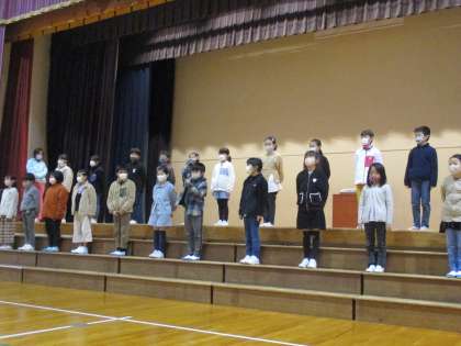 始業式の後には、担任から3学期が始まるにあたりメッセージを伝えました。下学年から上学年にステップアップするために、今学期、目指してほしいのは「進んでできるクラス」。みんなのよさを生かしながら、よいと思うことや正しいと思うことを進んでできるようになってほしいと伝えました。