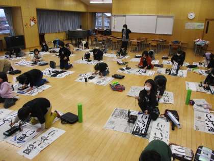 書初大会では、緊張しながらも、ゆっくりと筆を運ばせて丁寧に書くことができました。心を込めて「思いやり」と書くことができる子供たちの心も、思いやりでいっぱいなのだと感じました。
