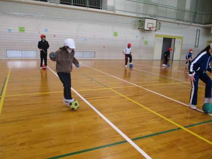 今日から本格的に3学期の学習が始まりました。今日の体育科の学習では、グリッドサッカーを行いました。まずは、ボールと友達になろう!ということで、ボールを足でタッチしながらもも上げをしたり、細かくドリブルをしたりしてボールに慣れるところから始めました。徐々にゲームができるように、頑張っていきます!