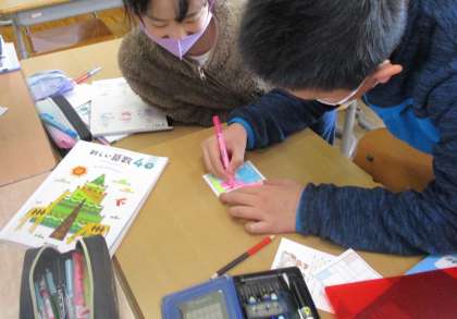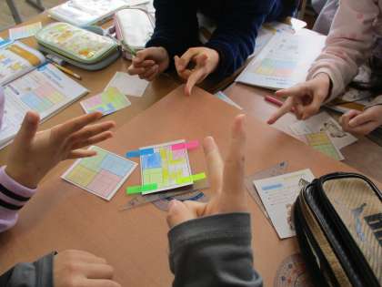算数科では、広さの表し方について学習しています。今日は陣地取りゲームを行いました。じゃんけんで勝った人が自分の陣地を広げていくゲームなのですが、どのグループも白熱した戦いを繰り広げていました。楽しみながら、学習しています。