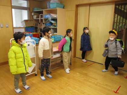 あいさつ運動ウイークが始まりました。今週担当の色団が、1年教室前のワークスペースで、元気なあいさつの声を響かせています。