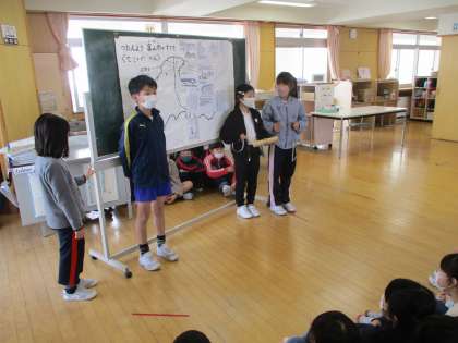 これまで調べてきた富山市のすてきな食べ物や建物、遊び場について、2年生に発表しました。2年生によく伝わるように、大きな声で発表することはもちろん、地図を指し示しながら話したり、クイズを入れたりするなど、興味をもって聞けるように工夫していました。これまでのがんばりが伝わってよかったですね。一連の学習を通して、3年生の子供たち自身も富山市のことについて深く知れたと思います。