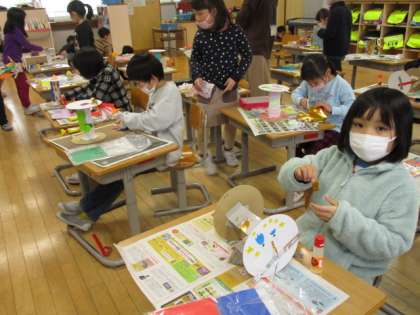 1年生 図画工作科「かみざらコロコロ」制作中です