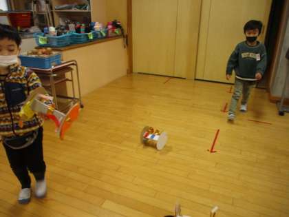 図画工作科でコロコロころがる工作をつくっています。転がった時にきれいでおもしろい工作になるように実際に転がしてみながら工夫を凝らしています。