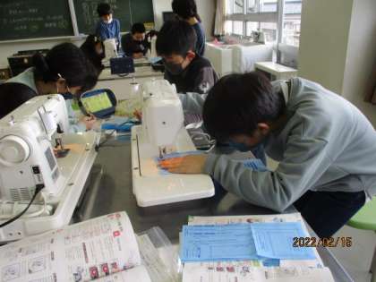 家庭科では、ミシンの使い方を学習しています。安全な運び方に始まり、空縫いや糸の付け方について、段階を追って学んでいます。今日は、直線縫いに挑戦しました。
