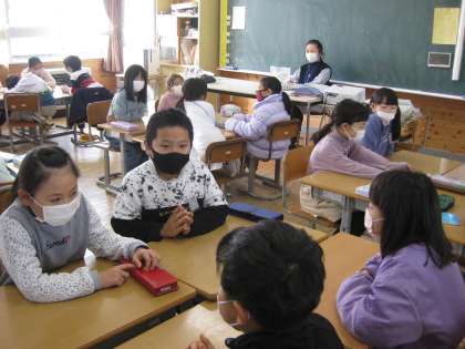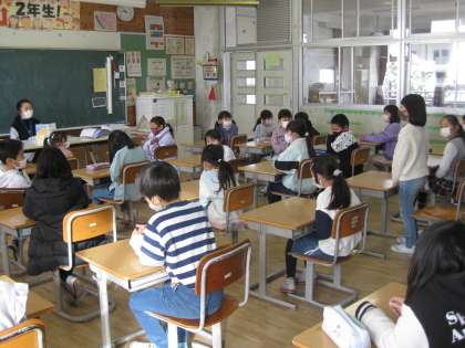 今日は、地域のボランティアの先生の読み聞かせの時間がありました。読み聞かせの先生は、毎回、その学年に合わせて話の内容を考えられ本を選んできてくださいます。今日は「きつねのリン」という物語でした。ちょうど2年生は物語「スーホの白い馬」を学習しています。どちらのお話も、人間と動物との心の交流が物語の核となっています。その物語の核を子供たちは、心からとらえていました。みんなの表情からは、読み聞かせボランティアのS先生の語り口とお話の展開に引き込まれていくのがわかりました。