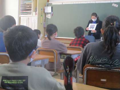 今日は、読書ボランティアの方が読み聞かせをしてくださいました。「さんかくくん」と「しかくくん」の2冊の本で、形ならではの話が面白かったです。