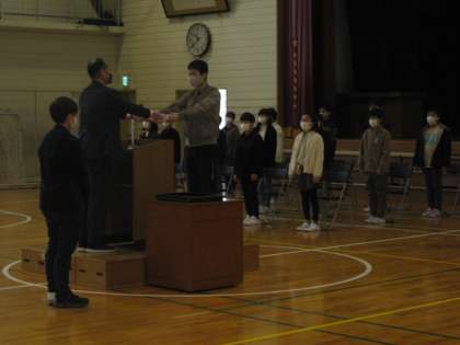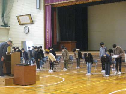 明日の卒業証書授与式を前に、修了式を行った6年生。