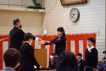 自分の成長をかみしめるように校長先生から卒業証書をいただきました。