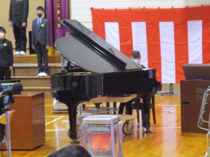 式での卒業生の立派な晴れ姿を在校生が見ています。5年生は、「来年はぼくたち、わたしたちも、あんなふうに巣立っていくんだな」と式に参加し、1年生から4年生は各教室でリモート中継を見ながら、リーダーの晴れ姿を喜んで見ていました。