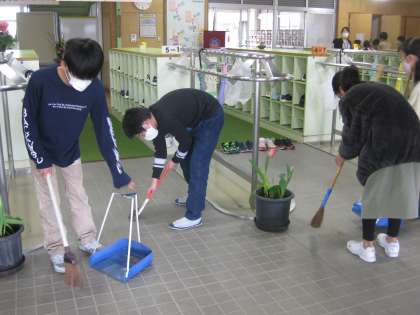 1年間過ごした教室をはじめ、校舎のすみずみまで感謝しながらきれいに掃除をしています。