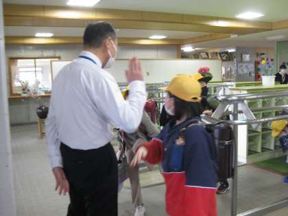 校長先生、用務員さん、担任の先生とハイタッチ!じゃんけんポン!!約束だよ!!!