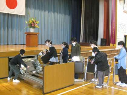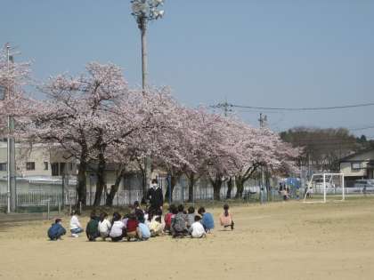 式と記念撮影が終わると、5・6年生は式場の片付けをしたり、2〜4年生は校舎内を掃除したり、桜が咲き誇っている暖かなグラウンドに出て、遊んだり集合写真を撮ったりして過ごしました。