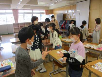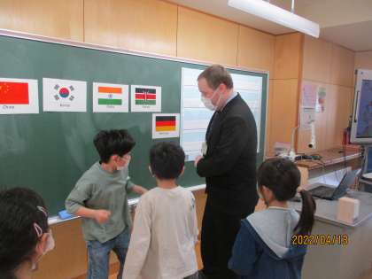 今日は、初めての外国語の学習がありました。いろいろな国の挨拶を学んだり、挨拶ゲームをしたりして、楽しく活動しました。授業の終わりには、「もう終わり!?」「もっとやりたい!」と話すくらい、楽しい時間はあっというまでした。