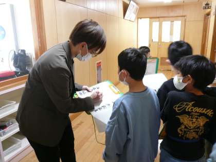 学校探検を通して、まだ名前を知らない先生がいることに気付きました。「先生の名前を覚えたい!」と、子供たちは休み時間に、先生方の名前を聞きに行っています。