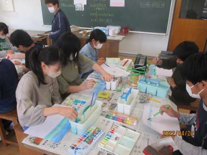 ・図画工作科では、混色と水の量に気をつけて美しい色作りをしました。