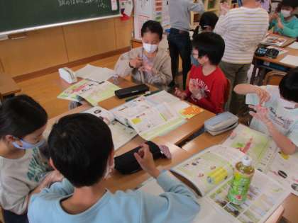 理科では、体の仕組みと働きについて学習しています。今日は、自分の腕を触って骨や筋肉の付き方や指の関節の位置を確かめました。関節があることによっていろいろな動きをすることができると分かりました。
