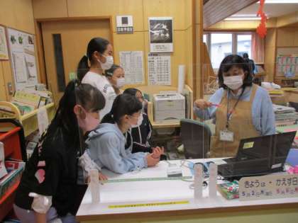 図書委員会は、貸し出しの手順を司書の先生に教えてもらいました。