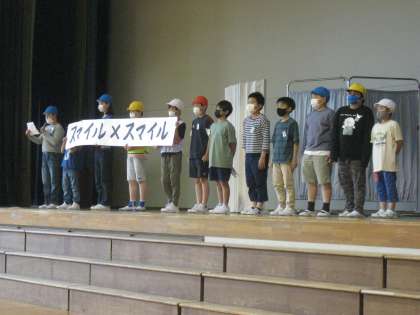 今年度の児童会スローガンは「スマイル!×スマイル!!」に決めたそうです。昨年度は「スマイル」でした。自分がスマイルになり、さらに相手、仲間、ふるさとっ子みんなのスマイルを目指そうという意味があると、企画委員会の子供たちから説明があり、みんなしっかり分かりながら聴いていました。