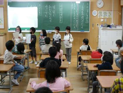 5月9日(月)1年生:学校探検で見つけた物を発表したよ