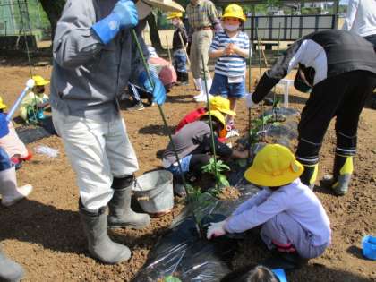 昨日買ってきた苗を畑に植えました。老人会の方に植えかたを丁寧に教えていただきました。大切に世話をしていきます。収穫が楽しみです。