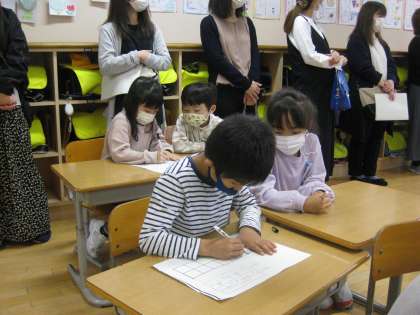 今日は、小学校で初めての参観日。勉強をがんばっているところをお家の方々に見にきていただいて、嬉しかったかな?はずかしかったかな?最後までがんばった1年生でした。