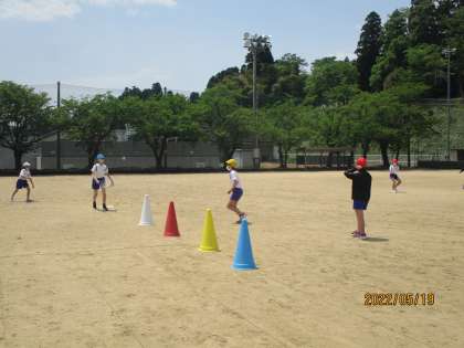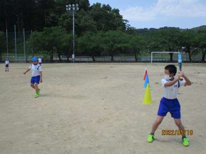 今日は、ラケットやバットを使ってベースボール型のゲームに挑戦しました。それぞれの挑戦したい道具を手に取り、練習に意欲的に取り組みました。点数にこだわる熱い気持ちも大切ですが、みんなで仲良く活動する心も大切にしていきましょう。