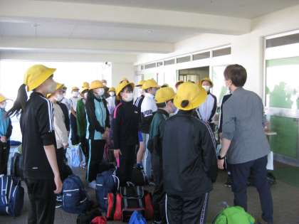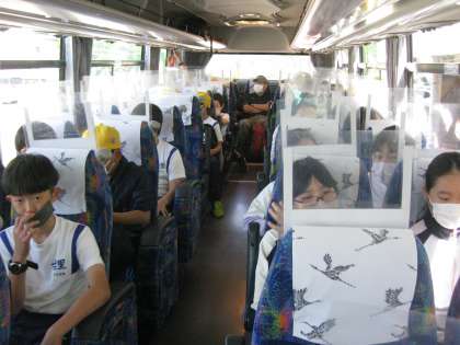 待ちに待っていた宿泊学習!とても、いいお天気でした!!みんなの心の様子を表しています。「行ってきま〜す!!!」