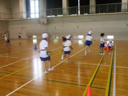 「たからとりおに」も終盤に入ってきました。団の課題を見付け、解決できるよう練習しました。スタートからゴールまでスピードの乗って走る、敵をかわすためにジグザグに走るなど、一所懸命取り組んでいました。