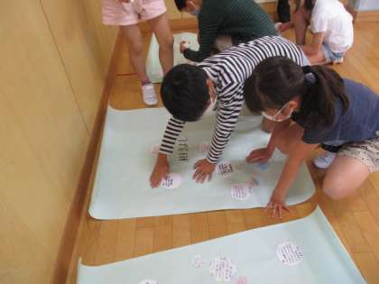 学級の合言葉「自分よし 相手よし みんなよし」を達成するために、一人一人ががんばることを決め、取り組んでいます。今日は、そんな友達のがんばりを見付けて、カードに書きました。子供たちからは「褒めてもらってうれしい気持ちになった」という声が聞かれました。