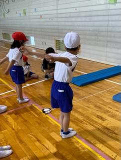 体育の学習で立ち幅跳びをしました。腕を大きく振りながら、「1,2・・3!」とリズムをつけて少しでも遠くに跳ぼうと頑張っていました。