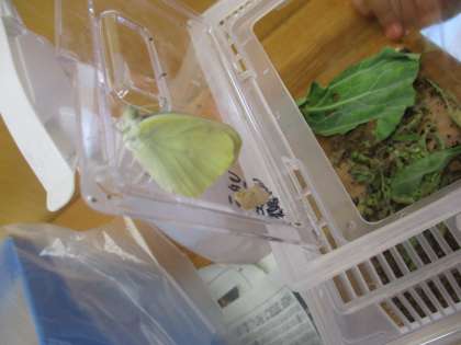 週明け、昨日の朝、なんと!さなぎからモンシロチョウが出てきていました!!今日も、何匹か成虫になりました。3年生のみんなは、この後、どうするのかな?と担任の先生も理科担当も興味津々で子供たちの様子を見ていました。