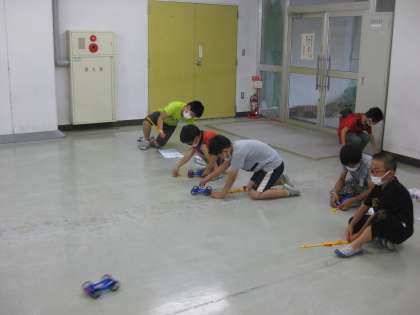 広い場所で、友達とおもちゃの車を走らせて遊びました。楽しみながら、どんなことが分かったかな?何を考えたかな?不思議なことや疑問が出てきたかな?