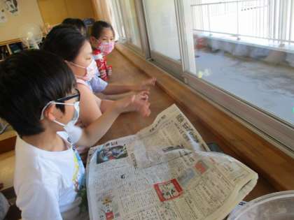 音楽では、リコーダーでソ、ラ、シ、ド、レがだんだん上手に吹けるようになってきました。指使いやタンギングに苦戦しながら練習をがんばっています。