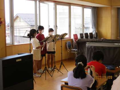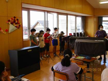6月28日(火) 5年生 音楽科「音の重なりを感じとろう」