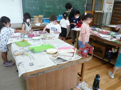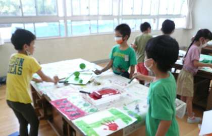 6月29日(水)1年生 図画工作科「ぺったんころころ」