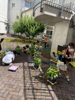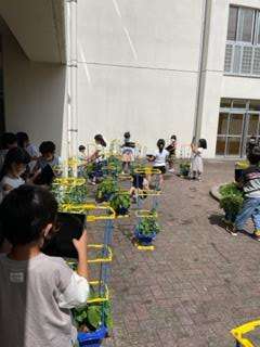 クロームブックを使って、あさがおの写真を撮りました。水やりをがんばっている成果が出て、花が咲き始めました。まだ咲いていない子供たちは、毎朝「まだ咲かないかな」「もうすぐ咲くかな」とあさがおの花が咲くのを待ち望んでいます。