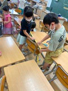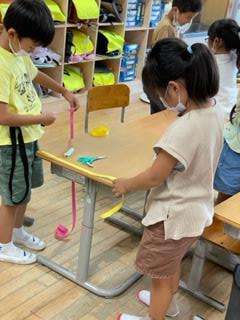 7月12日(火)1年生「長さの比べ方を考えたよ」