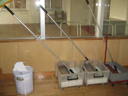 その後、みなさんが下校した後、先生たちと職員のみなさんでワックスかけをがんばりました。ピカピカになりました。