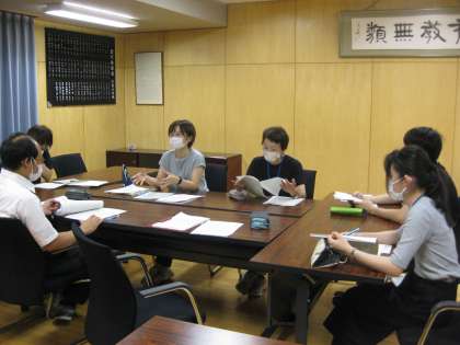 2学期からの授業について、先生方が集まり相談しています。どんなふうに授業をしたら、みなさんが楽しみながら自ら学びたいと思い、学習を進めていけるかと話し合っています。みなさんが、夏休みの宿題や課題を頑張っている間、先生方も頑張っています。