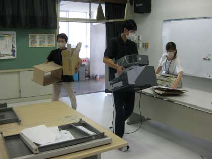 研修会の後、先生方みんなで、生まれ変わるコンピュータ室の環境整備をしました。