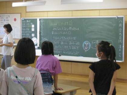 提出物、夏休みの課題等を出したり、席替えをしたり、夏休みの体験をみんなに語ったりしています。