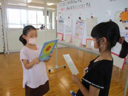 今日は、少人数で紹介し合いました。分からないことは質問して、詳しく聞こうとしていました。今日の練習が発表会につながるとうれしいです。