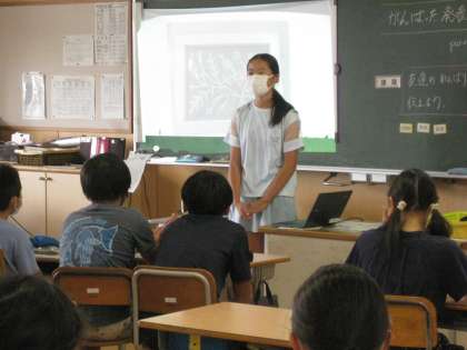 長い夏休みに取り組んだことの発表を各クラスで行いました。