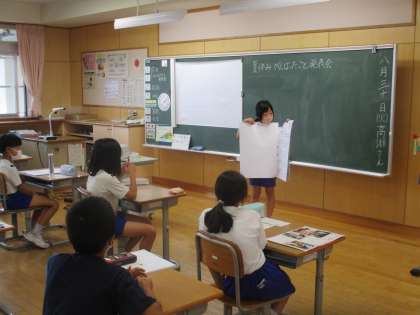 「がんばったこと発表会」では、夏休みに自分で決めて取り組んだこと、頑張ったことを伝えました。発表する人は緊張しながらも、がんばったからこその言葉で、しっかりと伝えることができました。聞いている人も、友達の発表から、興味が広がったようです。