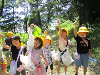 生活科の学習で千坊山に行きました。「一学期より虫がたくさんいるよ」「前にはなかった花がたくさんあったよ」など、子供達は季節の移り変わりに驚いていました。