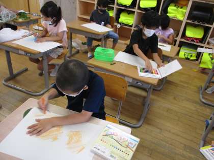 摘んできた植物で、好きな形を作ったり、紙に葉っぱの跡をつけたりして自然を楽しみました。