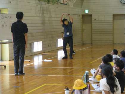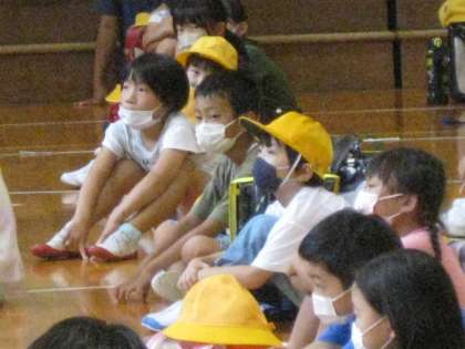 今日のお話は、生徒指導の先生から、あいさつのお話でした。先生方二人のあいさつを交わす様子を見て考えます。