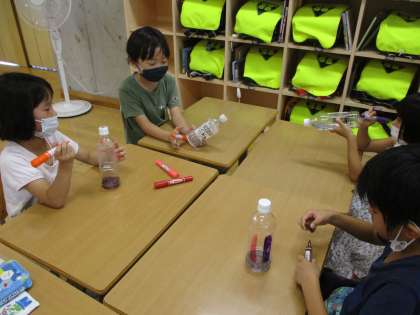「ペットボトルに入れると本物のジュースみたい」と子供たちはおおはしゃぎでした。