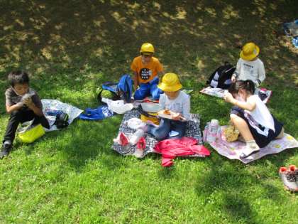 くたくたになってオリエンテーリングから戻ってきた子供たち。少し心配でしたが、お弁当を食べたら復活!おいしいご飯は子供たちの元気の源です。お弁当の準備、ありがとうございました。